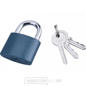 Az 52 mm-es öntöttvas lakat teste kiváló minőségű öntöttvasból készült, belső cinkbevonattal a korrózióállóság növelése érdekében. Sárgaréz henger. Kiváló minőségű edzett acélból készült csuklós szem. Kulcs nélkül, kattintással zárható. 3 kulcsot tartalmaz.