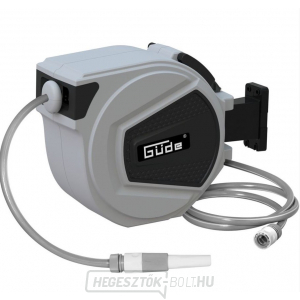 Falra szerelhető dob 20 méteres kerti tömlővel, kisebb területek öntözésére vagy dísz- és haszonnövények öntözésére. Automatikus tömlővisszahúzás, beleértve az egyenletes tömlővezetést; a dobról való letekerés után rögzíti a szükséges tömlőhosszúságot. Fúvóka pont- vagy kúp alakú vízsugárral; falra szerelhető konzol a dob rögzítéséhez (→ forgatható, max. oldalirányú elhajlás: 170°). Felépítés: doboz edzett műanyagból, 20 m poliuretán tömlő textilbetéttel, 1,85 m csatlakozótömlő, tömlőcsatlakozók (2 db). Tartozékok: ¾" csapcsatlakozás, ½" redukciós mellbimbó, szerelési anyag. Teljes méretek (hosszúság x szélesség x magasság): 430 x 190 x 330 mm.