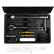 Professzionális készlet az eltávolított izzítógyertyák eltávolításához és a menet javításához. A készlet lehetővé teszi az M8 és M10 menetes izzítógyertyák szétszerelését. A javítás a fej szétszerelése nélkül is elvégezhető - ebben az esetben a megfelelő injektor helyére pneumatikus adaptert kell beépíteni. A sűrített levegő megakadályozza, hogy a maradékanyag az égéstérbe kerüljön.