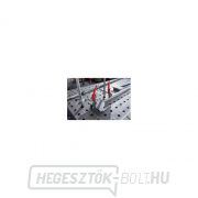 Rögzítőelem hegesztőasztalokhoz változó elrendezéssel, karos fogantyúval és racsnis mechanizmussal ellátott kivitelben