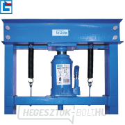 Hidraulikus oszlophenger (→ présnyomás: 20 tonna, max. Dugattyúlöket: 160 mm), automatikus visszatérő löket (→ 2 visszatérő rugó), csúszóágy (→ 7 állás, lépcsőzés: 100 mm).