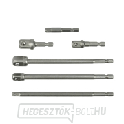 Adapterkészlet 6el aljzathoz. A készlet adaptereket tartalmaz 1/4", 3/8", 1/2" foglalatokhoz 150 mm és 50 mm hosszúságban. Króm-vanádium (CrV) szerszámacélból készültek, 1/4" HEX f ... (Részletes leírás)