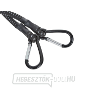Rugalmas kötél, amelyet a különböző áruk szállítás közbeni elmozdulásának megakadályozására használnak. A fém karabinerhorgok biztonságosak és tartósak, a véletlen leválás lehetősége nélkül rögzülnek a tárgyhoz.
