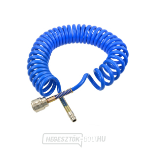 Kiváló minőségű, 5 méter hosszú spirálkábel. A tömlő hajlítás- és kopásálló poliuretánból készült. A pneumatikus szerszámok kompresszorhoz való csatlakoztatására szolgál. A tömlő komplett, kovácsolt, szabványos gyorscsatlakozóval és dugóval.