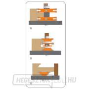 A készlet 27 mm hosszú tenon, profil és ellenprofil készít R8 mm sugarú dekoratív éllel. A tenon szélessége 4,7 és 16 mm között állítható. Külön is megvásárolható egy 2 darabos készlet profil és ellenprofilhoz, valamint egy hosszú tenonvágó. Kizárólag a maróasztalnál történő használatra. Kézi maráshoz nem használható.
