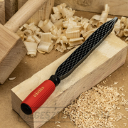 Japán kézi asztalos reszelő egyedi üreges szerkezettel, amely megakadályozza az eltömődést. A SHINTO márkától. Dupla penge különböző érdességekkel. Ergonomikus csúszásmentes fogantyú. Penge hossza 250 mm. Japánban készült.